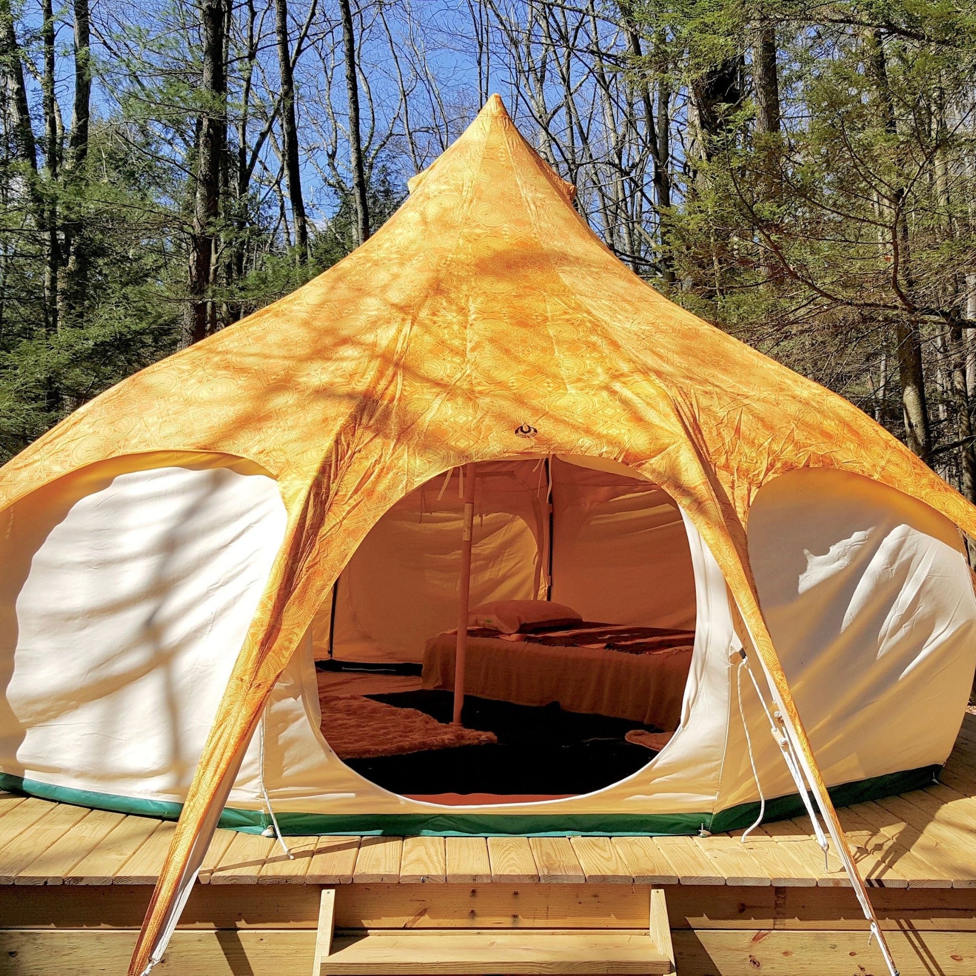 Please note the patterned roof covers are designed for additional UV and rain protection and to add some color to your glamping setup. The material is not suitable for long-term setup and will deteriorate if left up for long periods of time.
